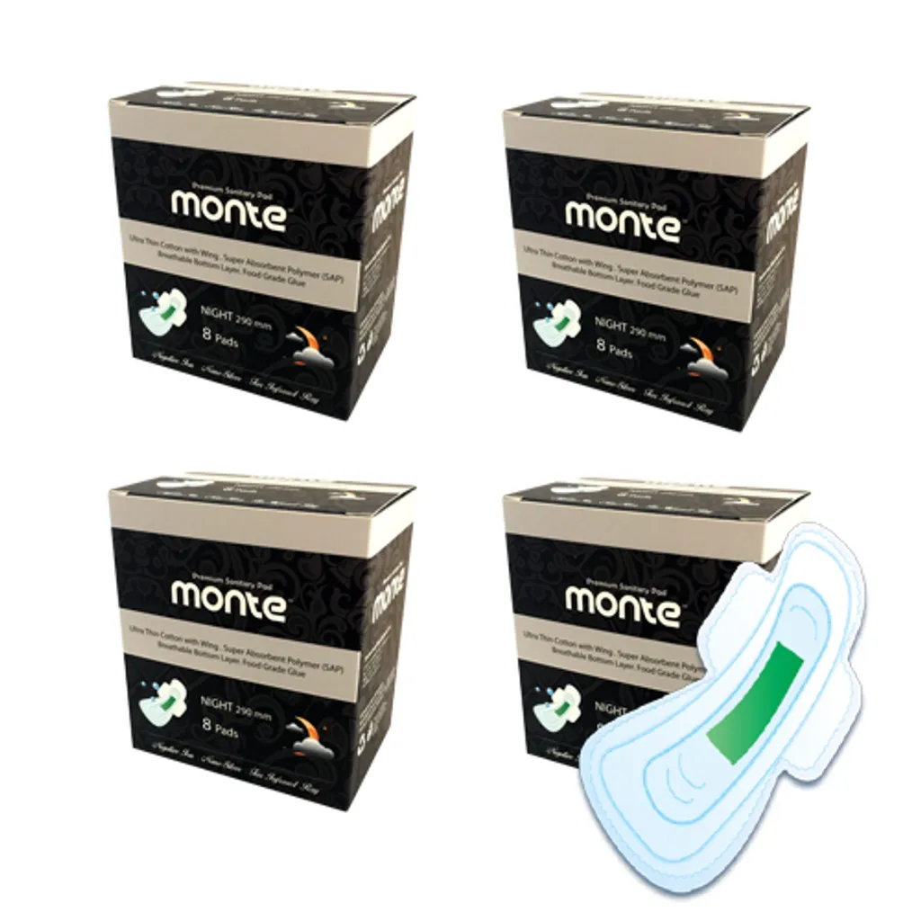 MONTE SANITARY PAD is a high-grade feminine sanitary pad designed with the latest cutting-edge technology which composed of a total of 8layers where high level of quality assurance is enforced and monitored from the selection of raw materials to the entire production processes.